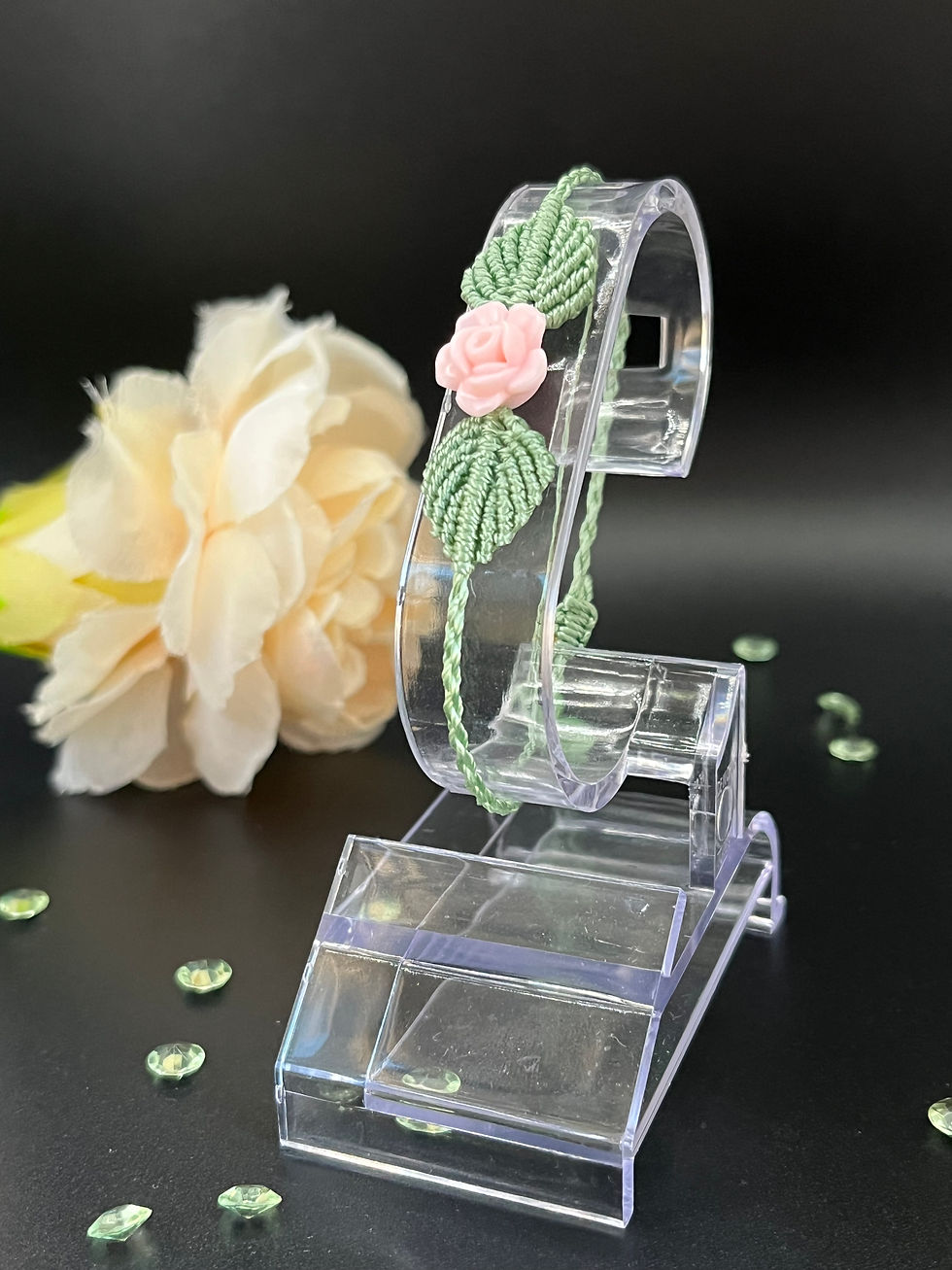 Festive wreath earrings made using forest green thread tied using macrame square knots and tiny red and green seed beads. These earrings are 3cm wide and have a drop of 5cm. They are finished with Tibetan silver bow charms and silver coloured earring hooks.